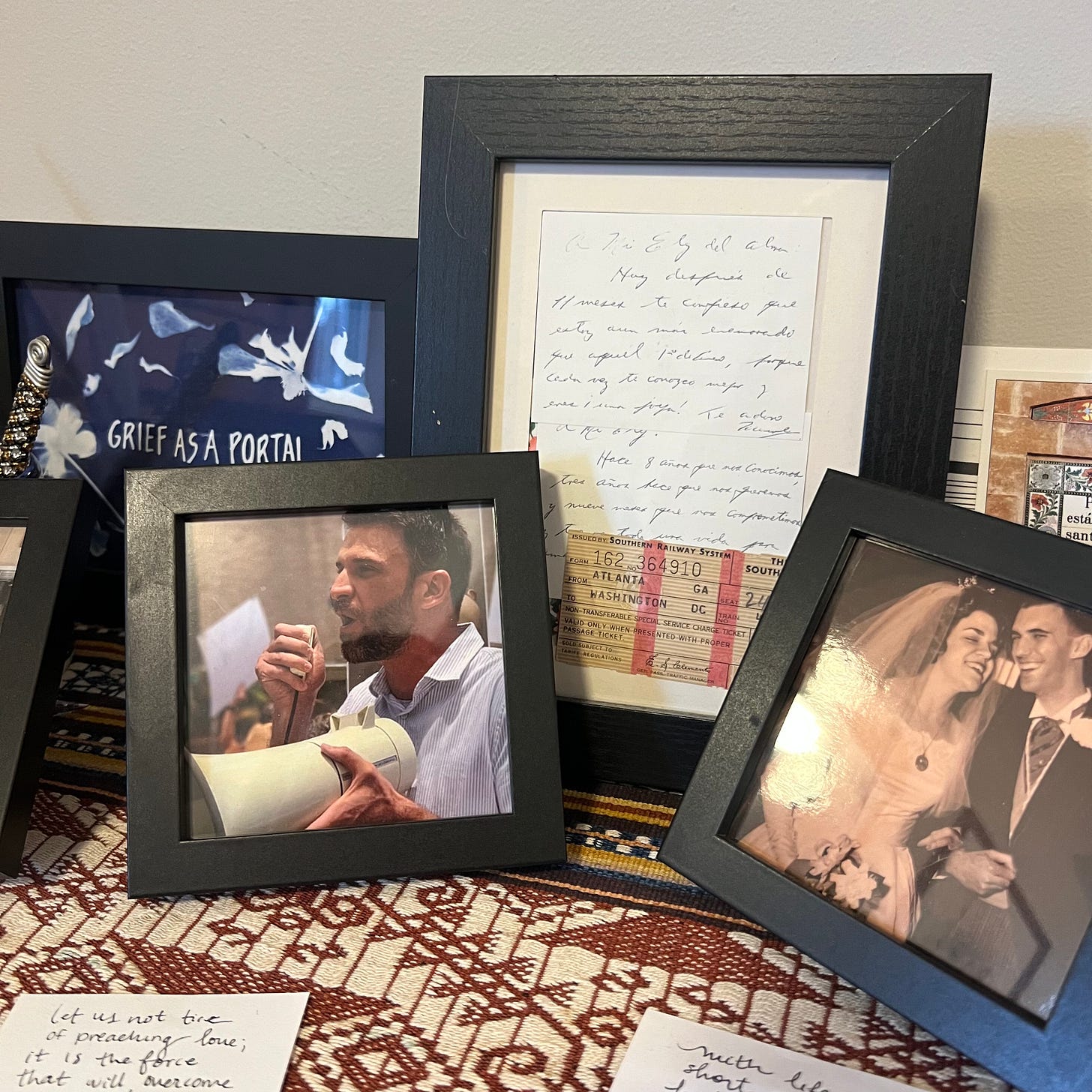 There is a picture of my uncle’s joyful courage in my bedroom. In it, he’s yelling into a megaphone, with a glimmer of hope in his eyes. He was protesting the first Trump administration and standing in solidarity with migrants. I meditate on photographs of my ancestors nearly every night. Their courage, and their ability to see that our freedoms are intimately wound into everyone else’s, continues to drive me forward.